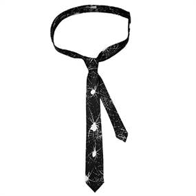 Sort halloween slips med hvidt edderkoppespind og en edderkop i midten. Et billigt og superflot halloween inspireret edderkoppeslips.