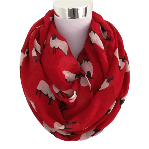 Dette smukke tubetørklæde i 100% viskose kombinerer komfort, kvalitet og et charmerende design. Tørklædet har en flot dyb rød bundfarve prydet med et legende fåremotiv i lyse nuancer, som giver et unikt og iøjnefaldende udtryk.