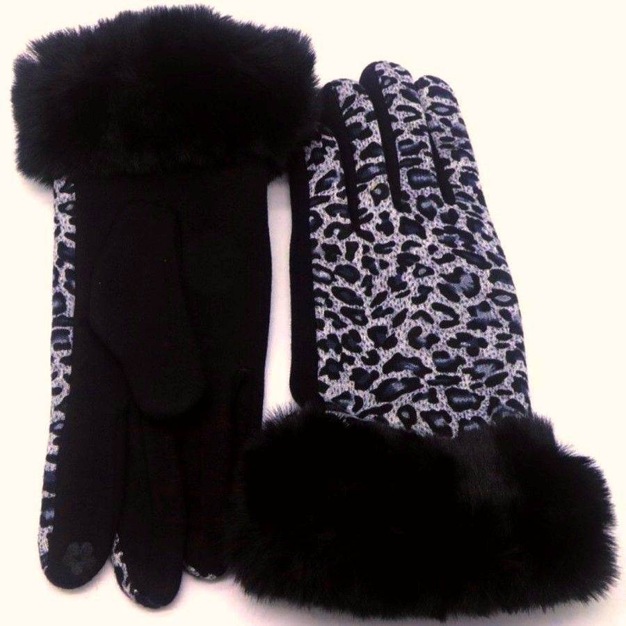 Giv dit vinterlook et sofistikeret twist med disse elegante handsker i sort og grå leopardmønster. Handskerne er fremstillet i blødt, strækbart polyester, der former sig behageligt efter hånden og holder dig varm på kolde dage.