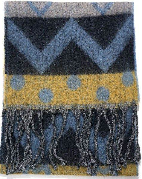 Giv dit outfit et elegant og moderne udtryk med dette ultra-bløde tørklæde i 100% polyester. Med sine smukke blå, gule og sorte nuancer og et stilfuldt, grafisk mønster er tørklædet både trendy og tidløst. Den behagelige kvalitet føles utrolig blød mod huden og giver dig varme og komfort hele dagen.