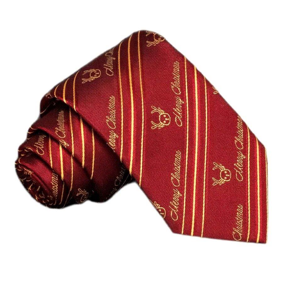 Giv dit festlige outfit et elegant løft med dette håndlavede juleslips i eksklusiv silke. Slipset måler 8 cm på det bredeste sted og 148 cm i længden, hvilket gør det ideelt til både klassiske og moderne knuder. Den dybe bordeauxfarve kombineret med de dekorative guldfarvede striber, “Merry Christmas”-tekst og små rensdyrmotiver skaber et stilrent og raffineret udtryk, der passer perfekt til julefrokoster, firmaarrangementer og højtider.