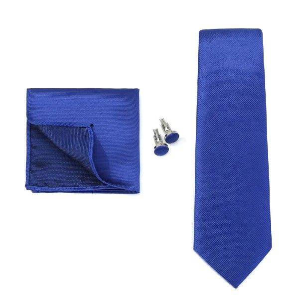 Kongeblå sæt m. slips, lommeklud og manchetknapper