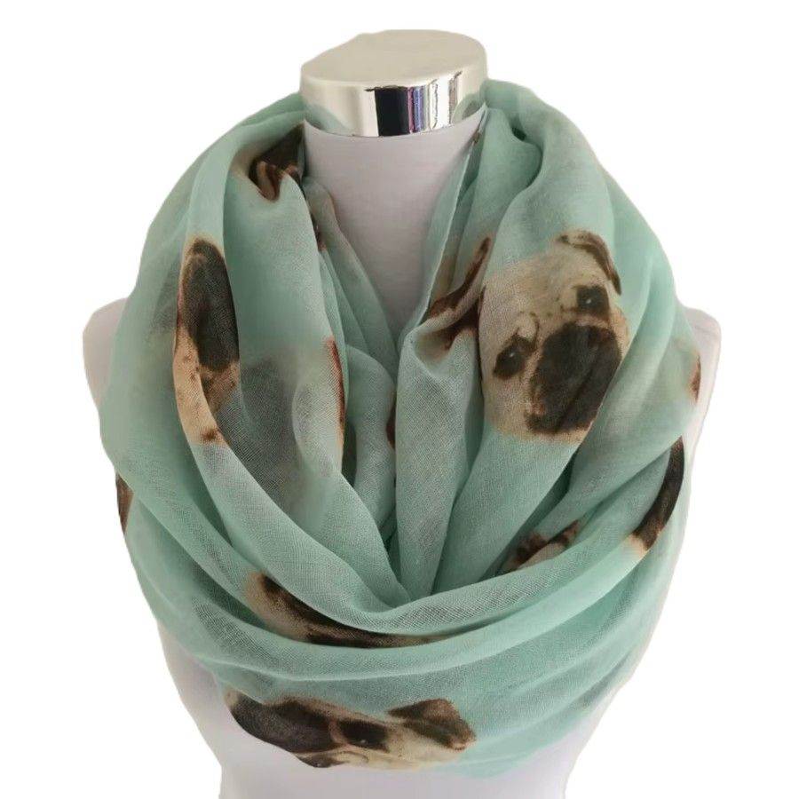 Dette elegante tubetørklæde i 100% viskose kombinerer komfort, kvalitet og et charmerende design. Tørklædet har et smukt all over print med søde mops hundeansigter, som giver et legende og personligt udtryk – perfekt til dig, der elsker hunde og gerne vil skille dig ud med stil.