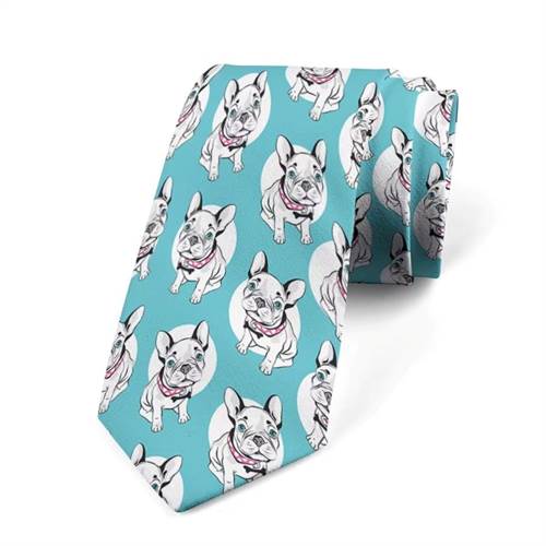 Lyseblåt slips med franske bulldogs