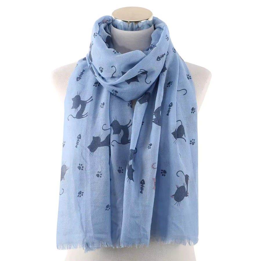 Lyseblåt tørklæde m. katteprint
