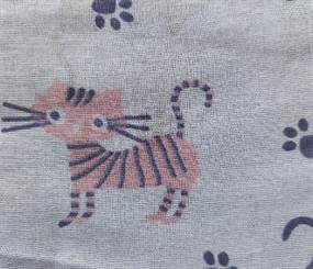 Design: Blåt tørklæde med katteprint og potespor