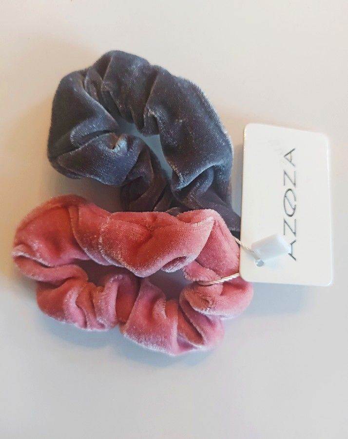 Tilføj et strejf af luksus til dit hår med disse smukke velour scrunchies fra AZØZA. Sættet indeholder to elastikker i blød, glansfuld velour – én i lyserød og én i grå. Perfekte til både hverdag og fest, og skånsomme mod håret, så du undgår knæk og slid.