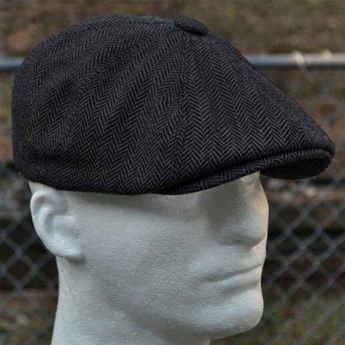 Mørkegrå sildebensmønstret flat cap