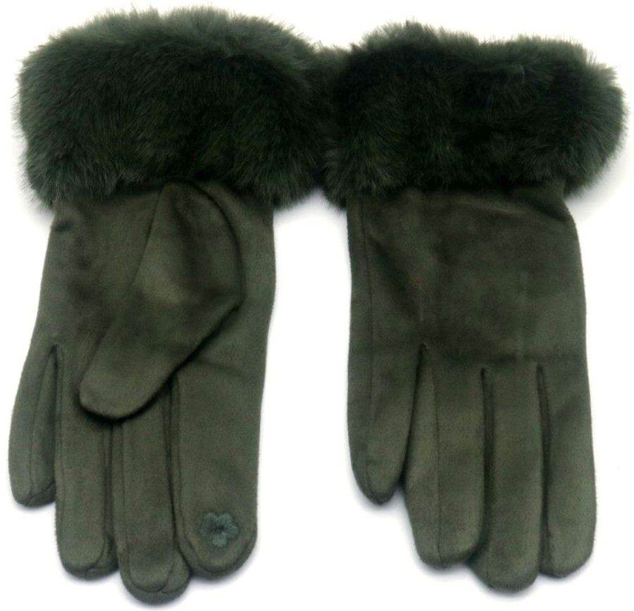 Mørkegrønne handsker med kunstpels og touch-funktion