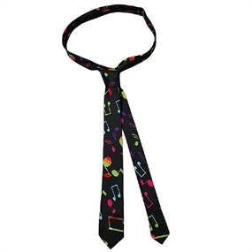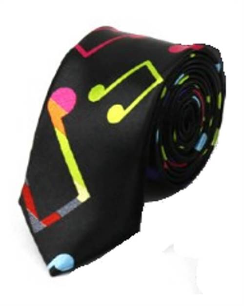 Musik slips i sort med store farvede noder. Et smart slips til alle musikere, korsangere eller orkester spillere.