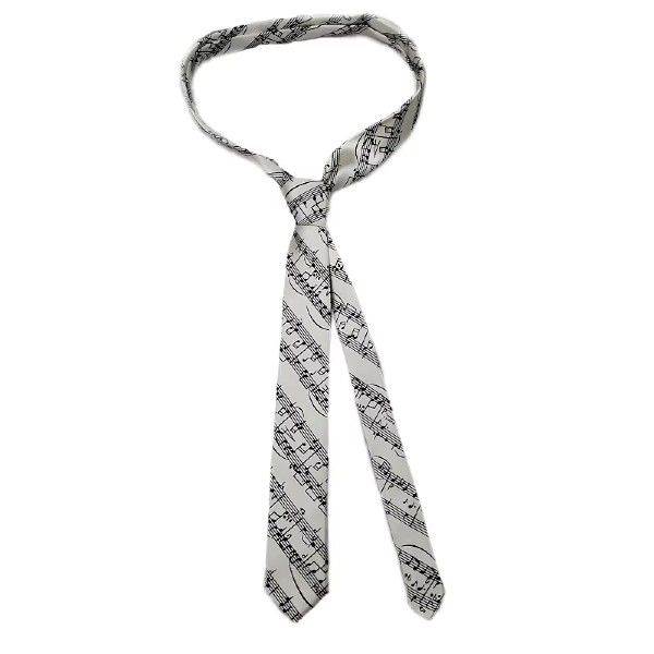 Flot hvidt slips med sorte nodebånd og sorte noder - det perfekte slips til musikere, kor sangere og andre der elsker musik.