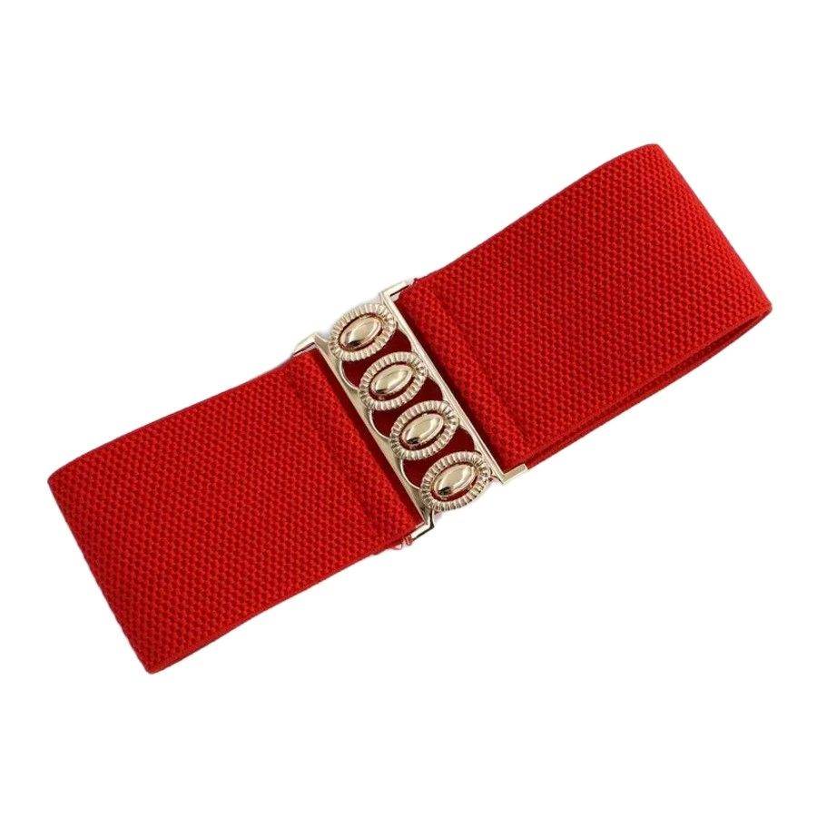 Giv dit outfit et elegant og farverigt løft med dette smukke brede elastikbælte i en kraftig rød nuance og et dekorativt guldfarvet spænde. Bæltet er designet i et fleksibelt elastik materiale, der former sig efter kroppen og fremhæver taljen på en flatterende måde.