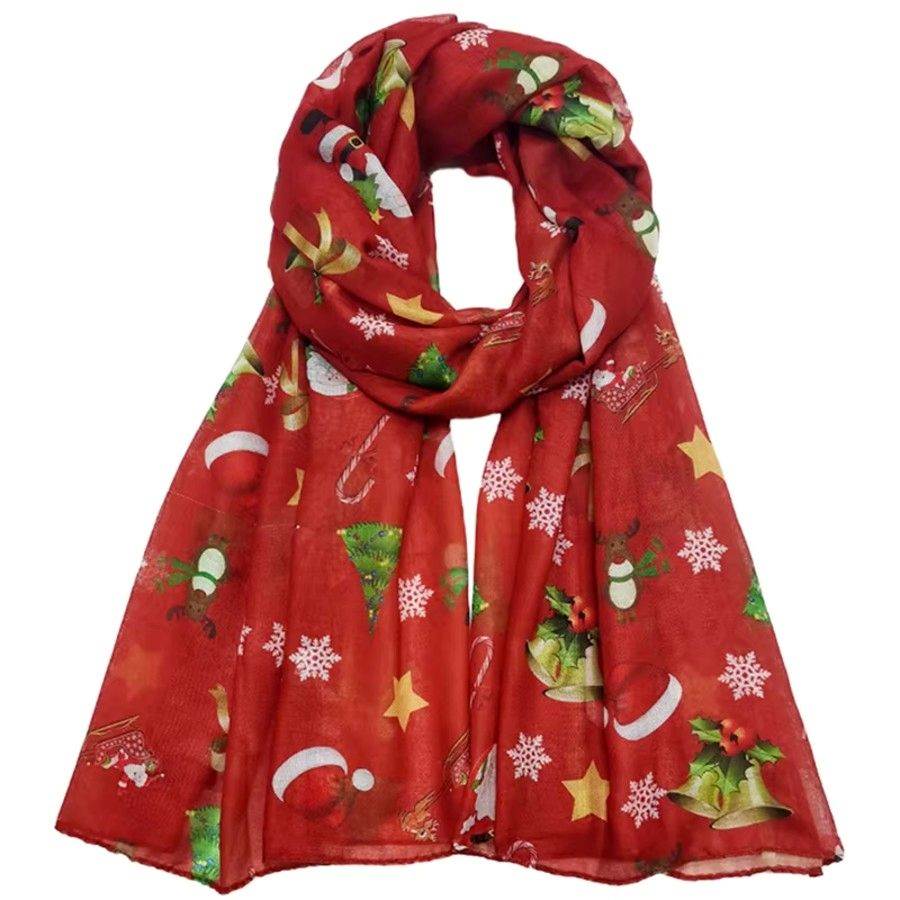 Giv din vintergarderobe et festligt løft med dette smukke juleinspirerede tørklæde i 100% polyester. Det røde tørklæde er dekoreret med klassiske julemotiver som snemænd, stjerner, klokker, juletræer og nisser, der skaber en varm og hyggelig stemning – perfekt til både hverdagsbrug og julefrokoster.