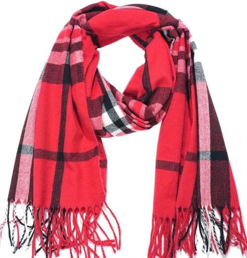 Materialet føles dejligt blødt mod huden og giver en behagelig varme uden at virke tungt. De fine frynser i enderne fuldender looket og tilfører halstørklædet et tidløst, moderne udtryk. Det ternede design i rød, sort, hvid og rosa gør det let at kombinere med både neutrale og farverige outfits.
