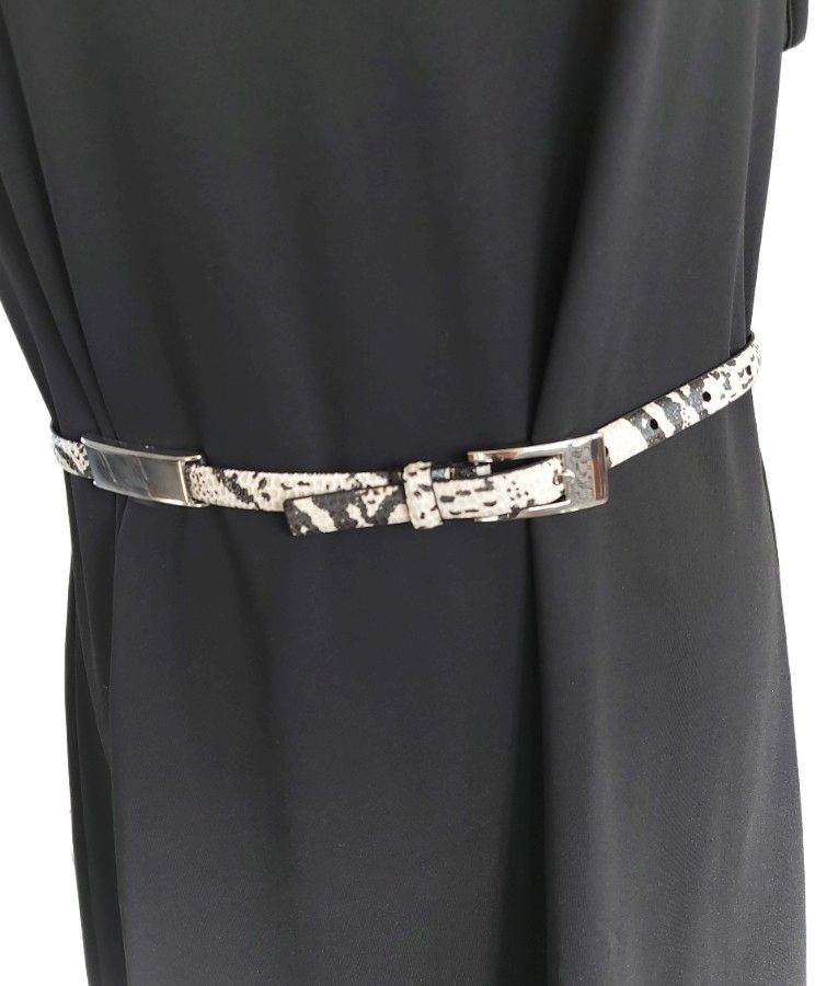 Giv dit outfit et elegant løft med dette smalle talje bælte i kunstlæder. Bæltet har et moderne og sofistikeret udtryk med et flot slangeskindslook og stilrene metal-detaljer, der tilføjer et eksklusivt touch.