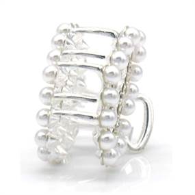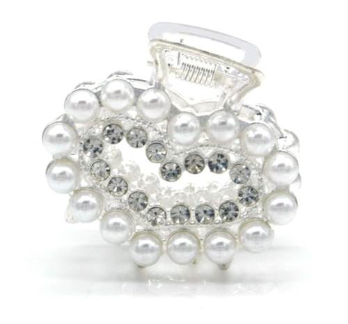 Klemmen er designet i en sølvfarvet finish og formet som et hjerte, omkranset af klassiske hvide perler, der giver et tidløst og luksuriøst look. Indvendigt er klemmen dekoreret med klare similisten, som fanger lyset og tilføjer ekstra glans. Hårklemmen sidder godt i håret og er ideel til både tykt og fint hår.
