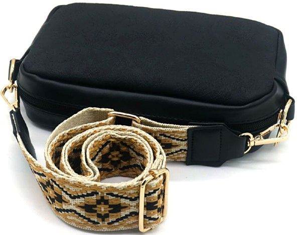 Sort crossbody taske med præget blomstermønster