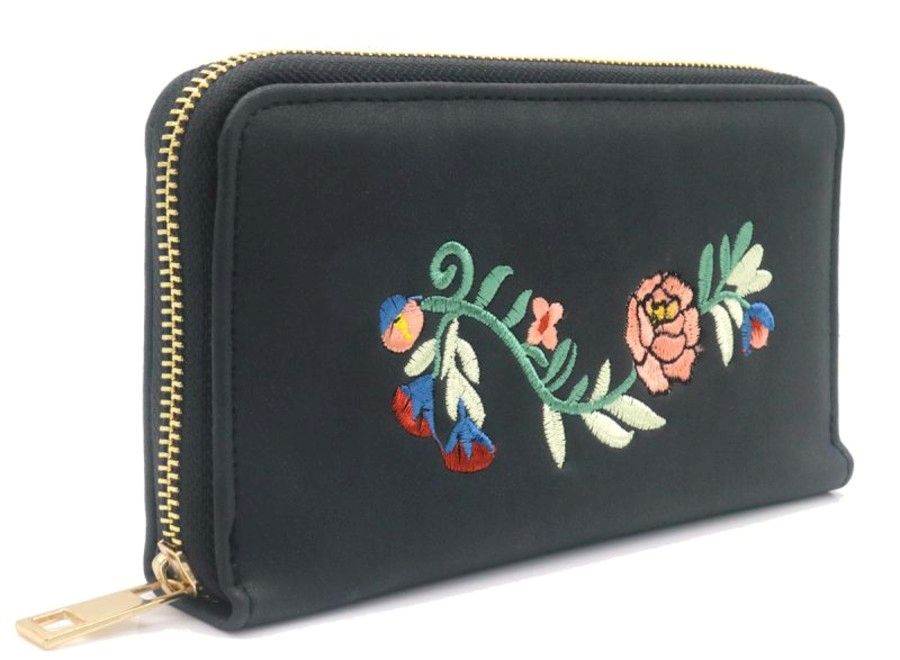 Denne elegante sorte pung måler 20x10x2,5 cm og har et virkelig flot blomsterbroderi, der tilføjer et strejf af elegance til din stil. Den er fremstillet af PU-materiale af høj kvalitet og tilbyder holdbarhed, samtidig med at den bevarer en blød og luksuriøs fornemmelse.