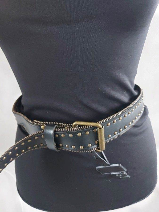 Bæltet er fremstillet i blødt og slidstærkt kunstlæder, der føles behageligt mod kroppen og giver et luksuriøst look uden at gå på kompromis med komforten. De messingfarvede detaljer tilfører et vintage-inspireret præg, mens lynlåsdetaljen giver et unikt og iøjnefaldende finish.