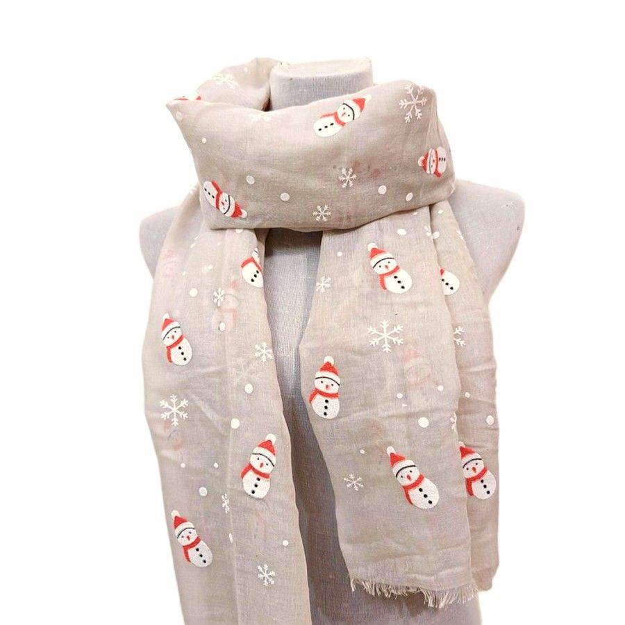 Beige juletørklæde med snemænd - et rigtig juletørklæde.