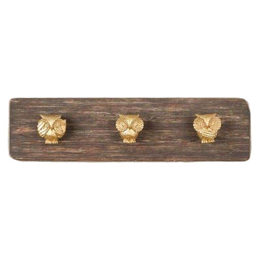 Giv din entré, stue eller garderobe et strejf af charme og personlighed med denne smukke knagerække i træ og metal fra La Finesse. Knagerækken er fremstillet i mørkt træ og prydet med tre elegante, gyldne ugleknager i metal, der både fungerer som praktiske kroge og som dekorative detaljer. Uglerne er ikke se, ikke høre og ikke tale.